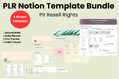 The PLR Notion Template Bundle is a white-label collection of four done-for-you Notion templates you can rebrand and resell: